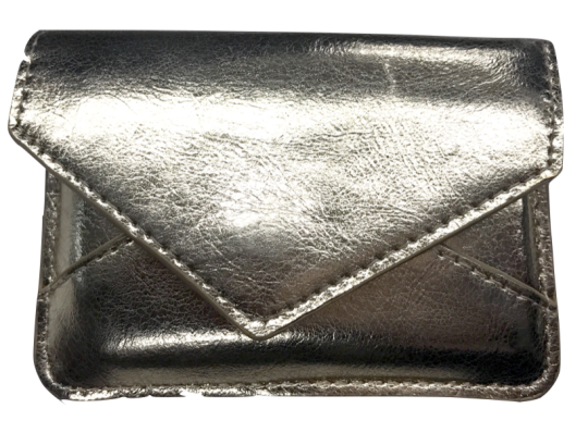 Metallic gold envelope-style card wallet, a compact accessory for carrying cards with no visible brand label.