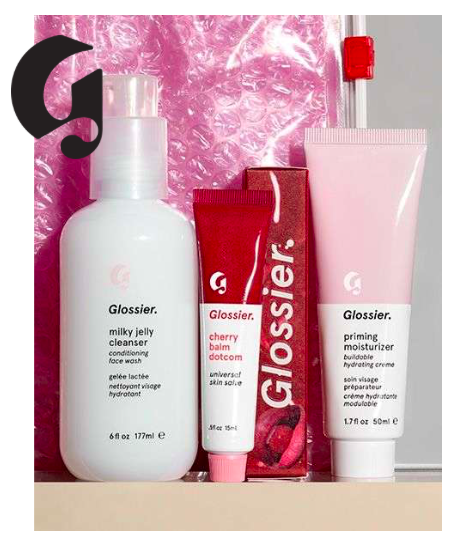 Glossier skincare and makeup line, featuring minimalist packaging and a curated product philosophy.