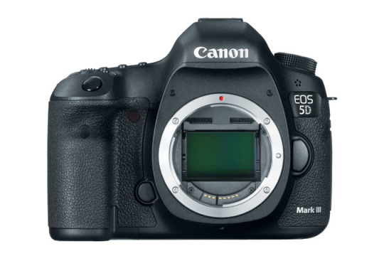 Canon 5D Mark III DSLR camera body with upgraded autofocus, high ISO capability, and dual memory card slots.