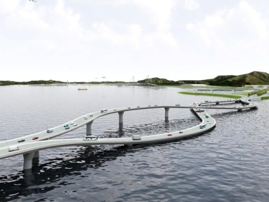 The “flipper bridge” solves this vexing problem by “separating the two sides of traffic, using a figure-eight shape. One side of the road dips under