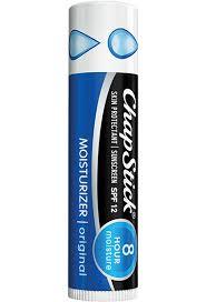 ChapStick Original Moisturizer, a classic lip balm in the iconic twist-up tube format with SPF 12 sun protection.