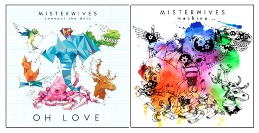 Variable album artwork for the band MisterwWives, showing how a central visual concept is adapted through recoloration and reinterpretation across multiple music releases.