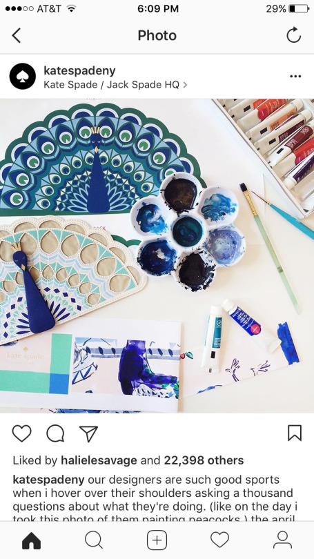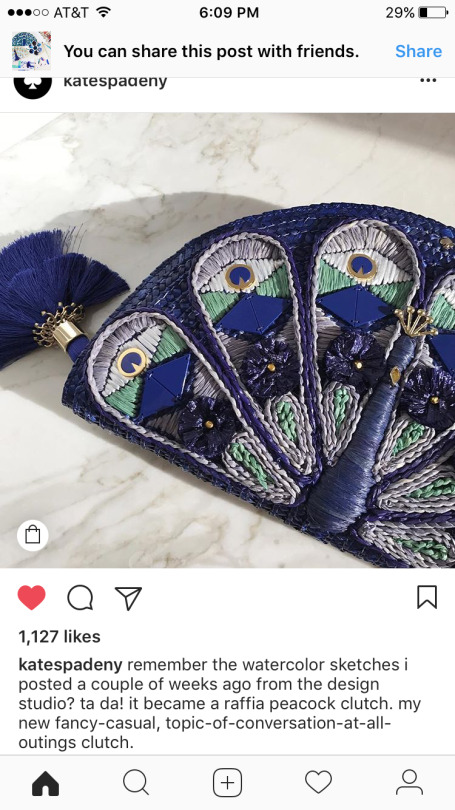 What I really enjoyed about this item was seeing the back story behind how it was made. Had I just seen the purse (without seeing the first photo posted), I likely wouldn’t have noticed the different shades of blue or the geometric quality to the pieces of the peacock’s feathers. Also, by letting the shopper in on the process behind the product, J. Crew has cleverly made the clutch seem vetted. Since I have some experience with this purse already, I’m far more likely to buy it. This example made me think about how fashion items are marketed. In this case, it was a photo of the unfinished product, not the stylized (at this point, rather boring) final product shot that made me want to buy.