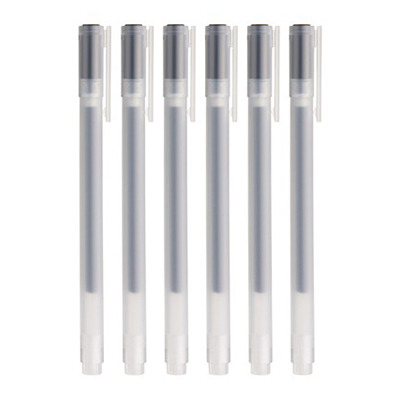 Muji gel pens with minimalist clear plastic casing, precise writing tips, and non-branded design.