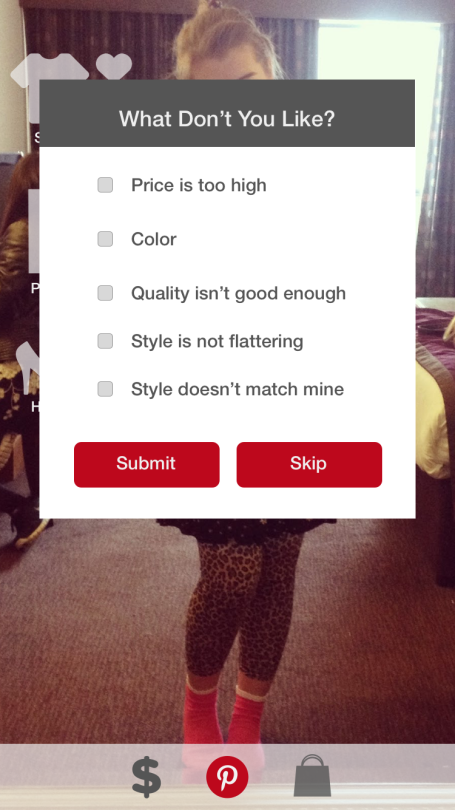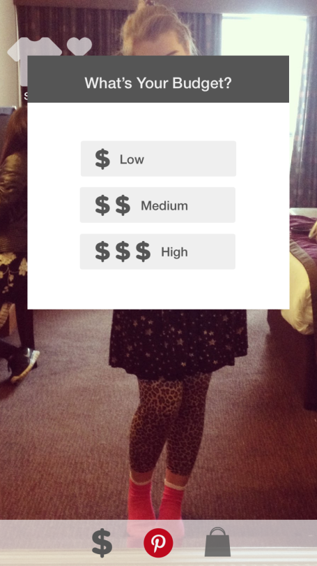 On the next screen, the user is asked what their budget is. They can skip this step if they’d like to, but it helps the app generate items that fit within their budget. The user is then able to try on the items of clothing through augmented reality. (Wayfair’s AR technology makes the virtual furniture seem incredibly authentic, while ours is just a rough prototype). Next, the user can indicate whether they liked or disliked the item they tried on. If they like the item, they are given more information about the item, such as what brand it is and where they can purchase the item. If they dislike the item, they are able to provide feedback on why they dislike it, as well as try on the next item that is similar but from a different brand. Though Pinterest currently doesn’t capture data on where an item can be purchased for every photo taken, and neither does it allow users to make purchases directly from the app, we envision that this could become a priority for the company in the future as it would bring in substantial revenue. In addition, since brands would need to invest in 3D scanning technology in order to render their products in AR, they would need a financial incentive to partner with Pinterest to offer their products as 3D objects for users to try on.