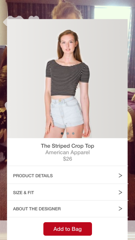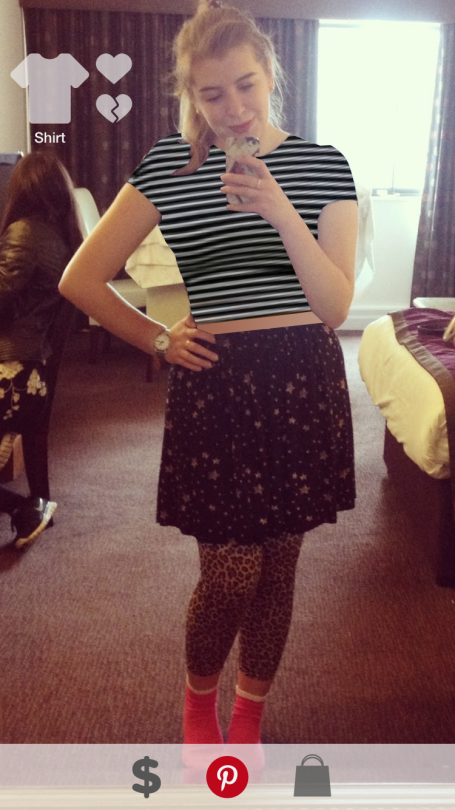 For this challenge, we harnessed the popularity of an existing app that fashion enthusiasts already use: Pinterest. Currently, users use Pinterest to “pin” fashion blogger and celeb styles for inspiration. Sometimes, their pins are linked to websites where they can purchase the look, but not always. Pinterest recently added a new feature to their mobile app that allows users to take photos of objects they find to be desirable, generating a series of pins that are similar to the object. Due to Pinterest’s existing popularity with fashion enthusiasts and its innovative use of machine learning, we decided to build our fashion AR idea off of Pinterest.