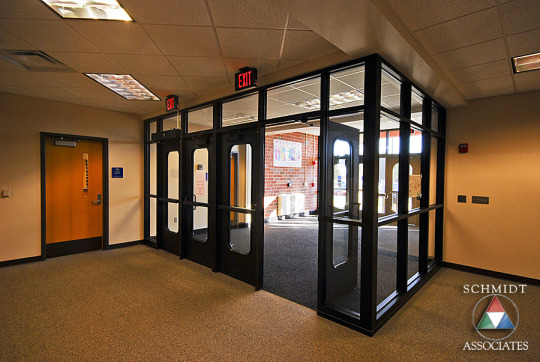 Vestibules — enclosed secondary entrances in buildings that provide a temperature buffer zone for cold climates.