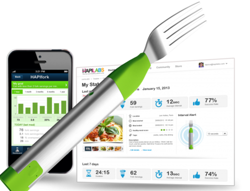 HAPIfork — a smart fork that vibrates when you eat too fast and syncs eating data with smartphones.