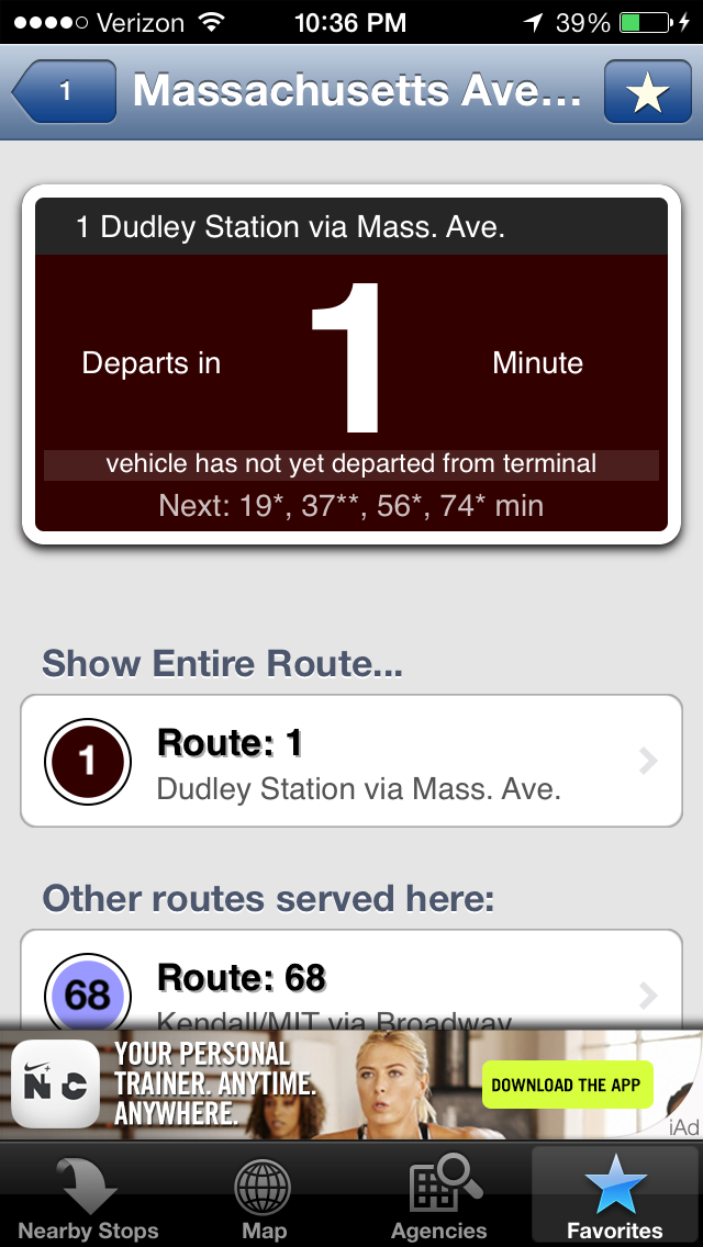 NextBus real-time bus tracking app that shows arrival times and routes for public transit commuters.