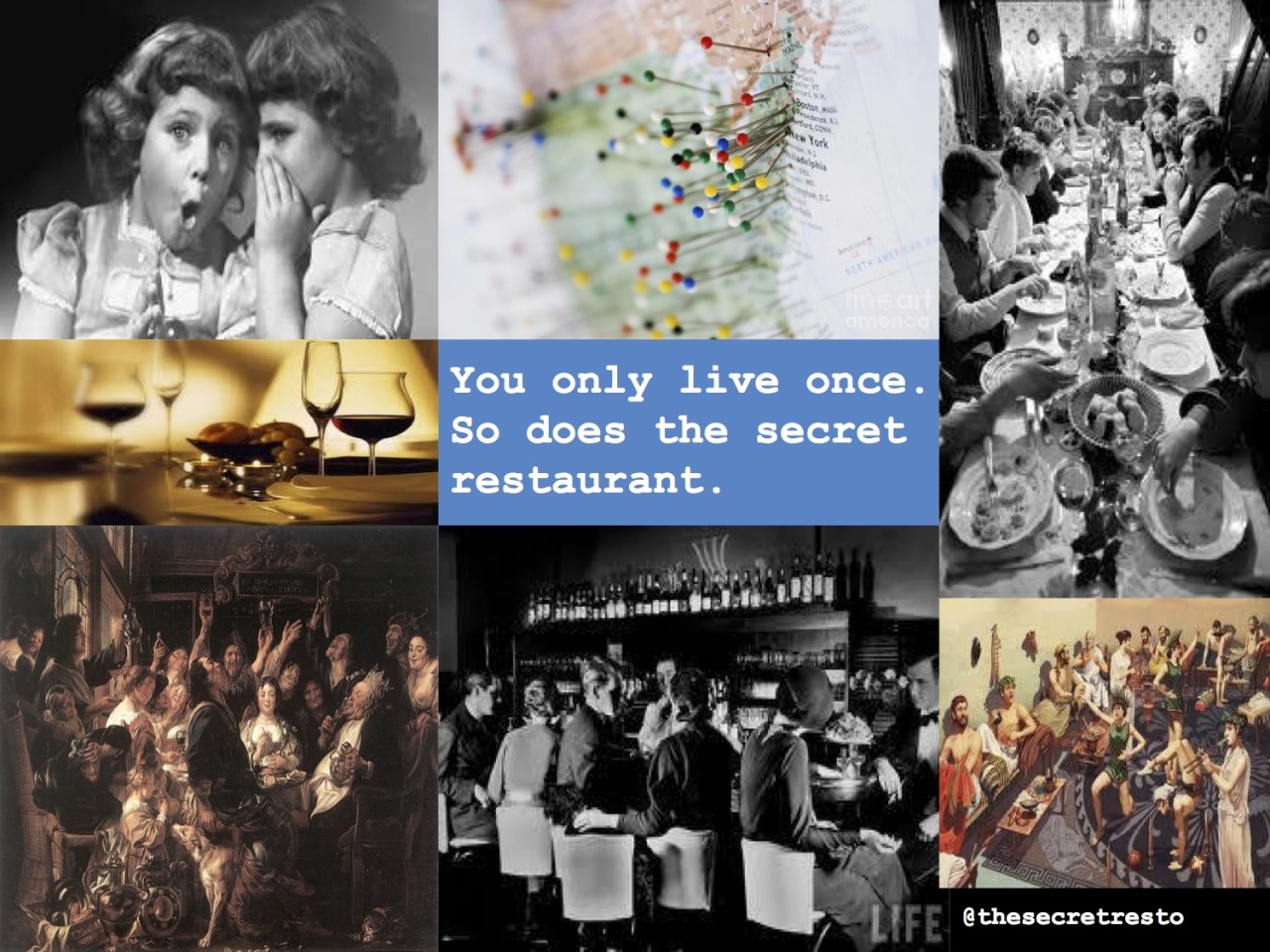 The Secret Restaurant (@thesecretresto), a mystery dining experience where guests don't know the location, theme, or menu until they arrive.