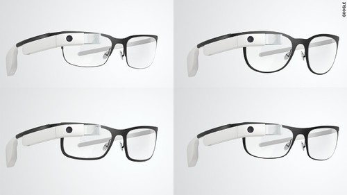Google Glass redesigned with stylish eyeglass frames and prescription lens options to appeal to a mainstream audience.