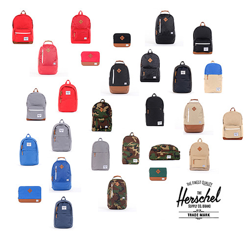 Herschel Supply Co. backpacks and accessories, a range of bags popular among students with distinctive designs at fair prices.