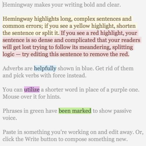 Hemingway app makes your writing bold and clear by highlighting sentences that are too long and dense. It also highlights ineffective words and adverbs and suggests alternatives to replace them. Its minimalistic design allows you to copy and paste your own text into the app with no hassle.