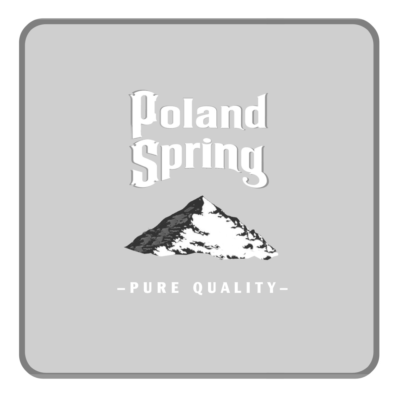 Redesigned Poland Spring water bottle label with a minimalist, desaturated grayscale aesthetic targeting premium consumers as an alternative to Smartwater.