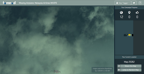 TomNod, a crowdsourced satellite imagery platform that gamified the search for missing Malaysia Airlines flight MH370 by letting ordinary users tag potential traces in satellite photos.
