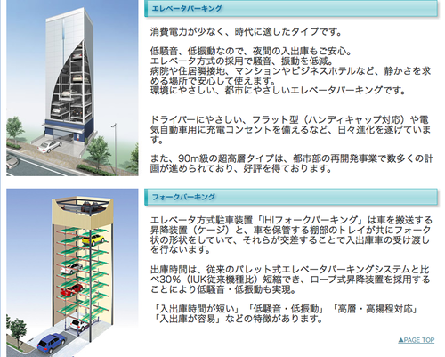 Japanese automated elevator-style parking garage that vertically stacks cars, solving urban parking space constraints in dense cities like Tokyo.