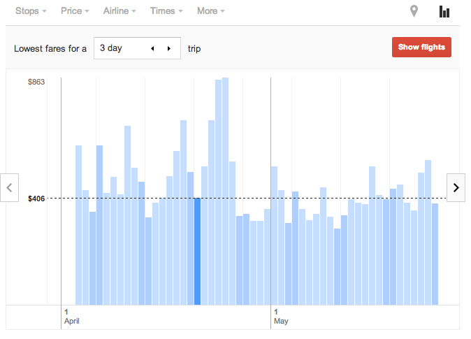 Finds you the cheapest ticket in a simple, clean and efficient manner. It’s perfectly simple and different from the other flight search engines that’s often confusing with pop-ups and unnecessary clutter. Simply input your dates and times and the cheapest air flights will appear in order. Other features include graphs that tell you when tickets are cheapest to fly out on. Goodbye Cheap-o-Air and Orbitz and hello Google Flights.