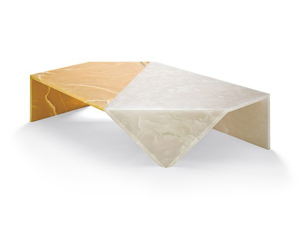 Earthquake Collection — sculptural marble shelving/table made from scrap marble pieces by Patricia Urquiola for Budri, inspired by Japanese origami folding patterns.