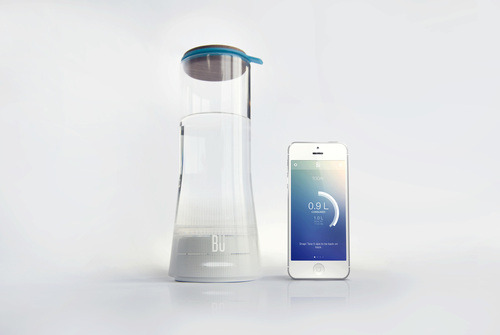 BU, a connected glass carafe with sensors that tracks daily water intake via a companion mobile app to help users stay hydrated.
