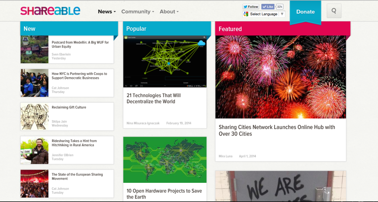 Shareable.net, a website and movement that unites designers who want to make social change through sharing-focused design.
