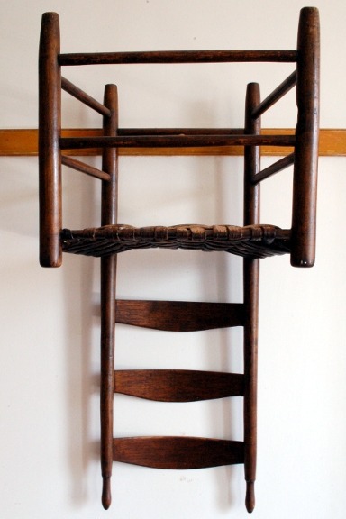 A Shaker-style ladder-back chair, over one hundred years old, exemplifying the Shaker tradition of simple, practical, and durable furniture craftsmanship.