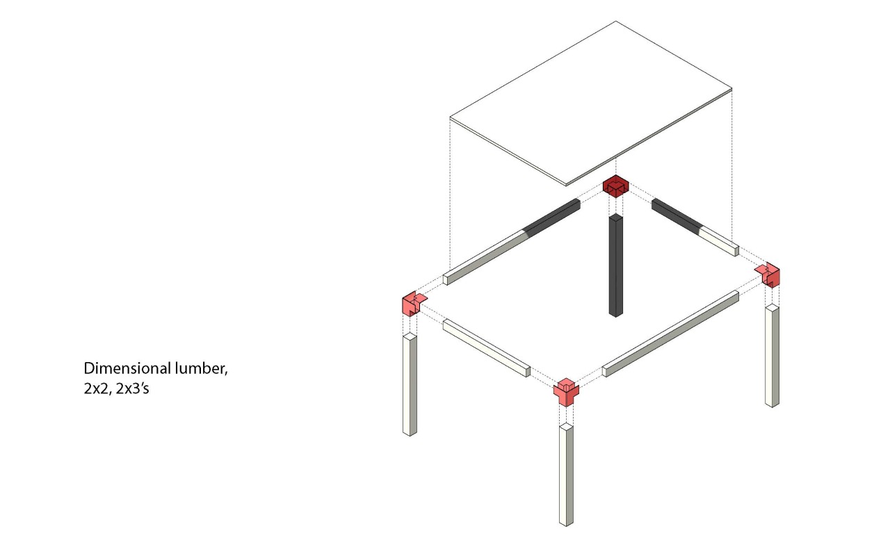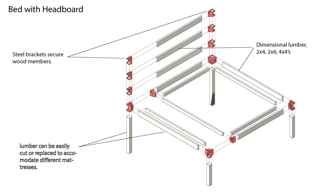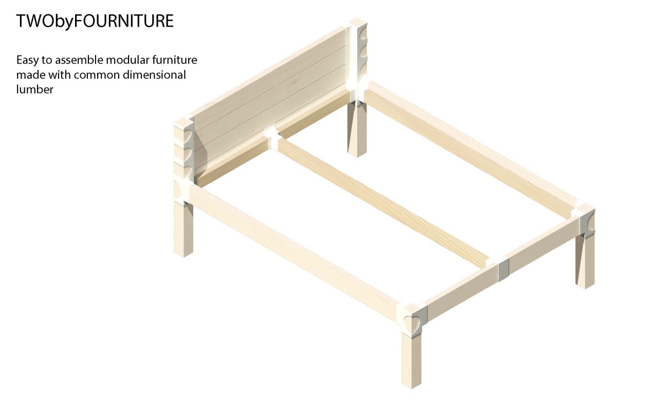 TWObyFOURNITURE: a modular bed frame designed for easy assembly using common dimensional lumber (2x4s), with simple interlocking joint construction.