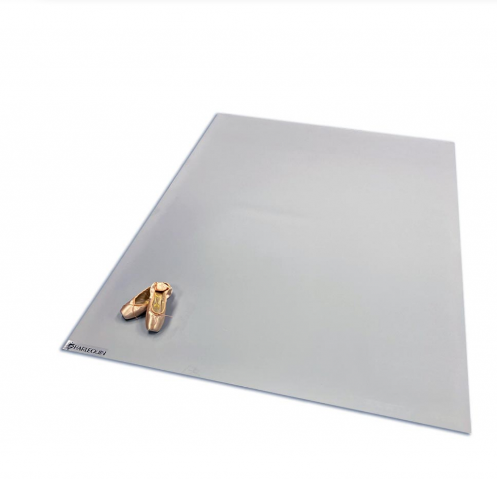 Harlequin Dance home-sized Marley floor mat created in response to COVID-19 so dancers can safely train at home without injury risk.