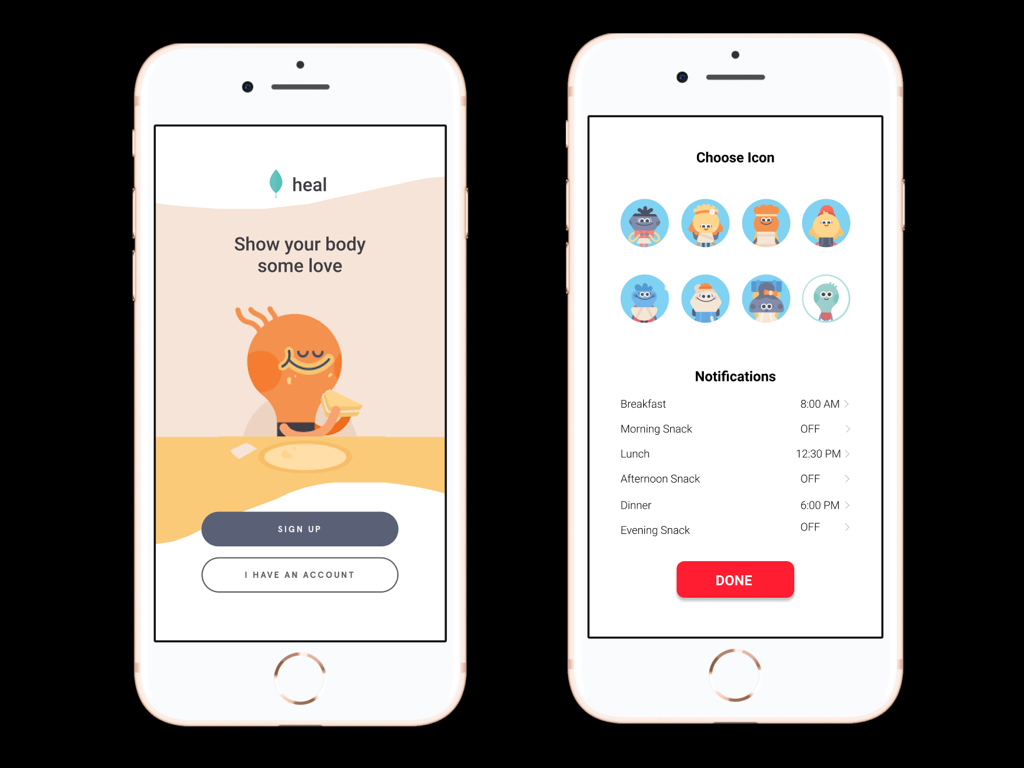 Other ED apps do not have features for personalization, such as a login or character feature. Create your own personalized account with HEAL. Characters create ‘stimulation’ and greater ‘engagement’ for users, which in turn can increase motivation to use this app.