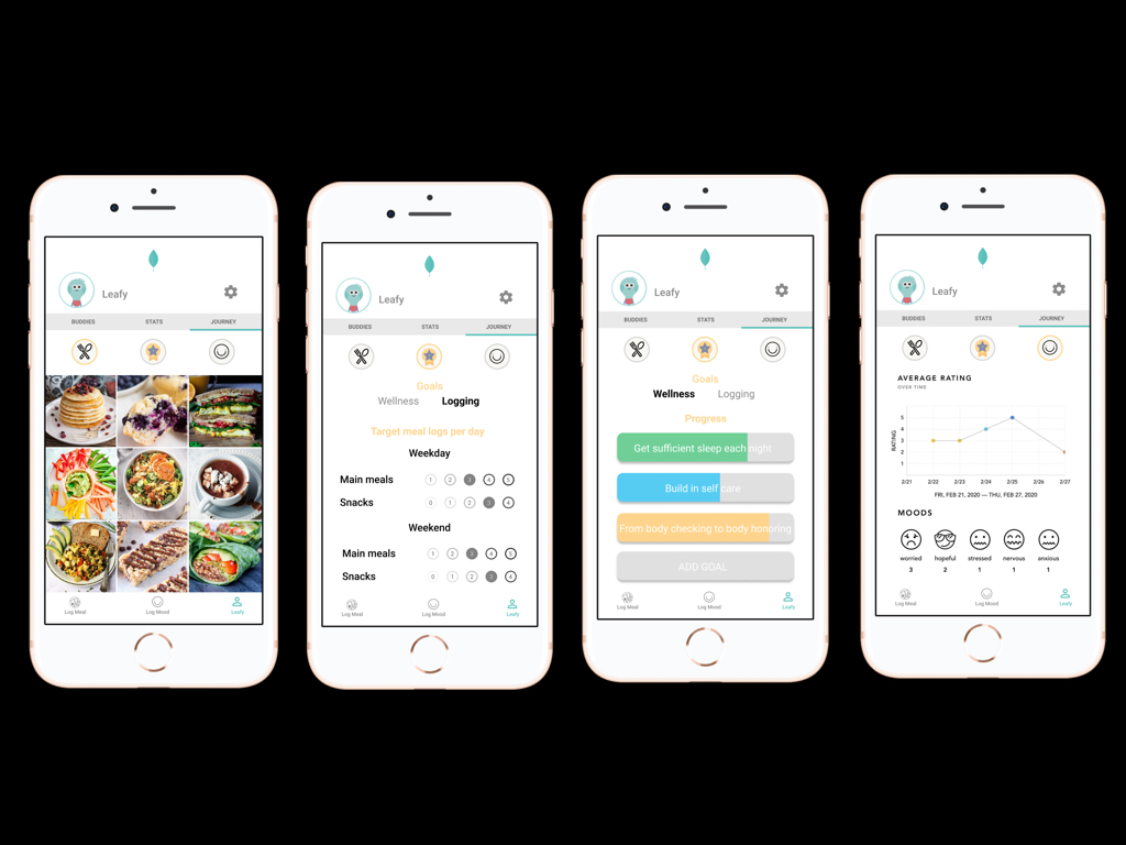 It is estimated that 20 million women and 10 million men will experience an eating disorder in the U.S. alone (NEDA). Food logs are research backed tool to help those experiencing an ED to self-monitor their intake and eating behaviors. According to user-reviews, current apps that support eating disorder recovery are ‘overwhelming’ and have ‘outdated’ features that decrease ability to complete self-monitoring. The old behavior we seek to change is incompletion of food logs and emotion/behavior check-ins on a routine basis. Self-monitoring can be a tedious process, but with the right design for simplicity, ability can be increased to complete food and emotion/behavior logs in a daily, regular basis. Why shouldn’t ED apps feel modern and beautiful like Headspace or Moody? In partnering with Headspace and utilizing its features that create a pleasurable experience, we hope to
