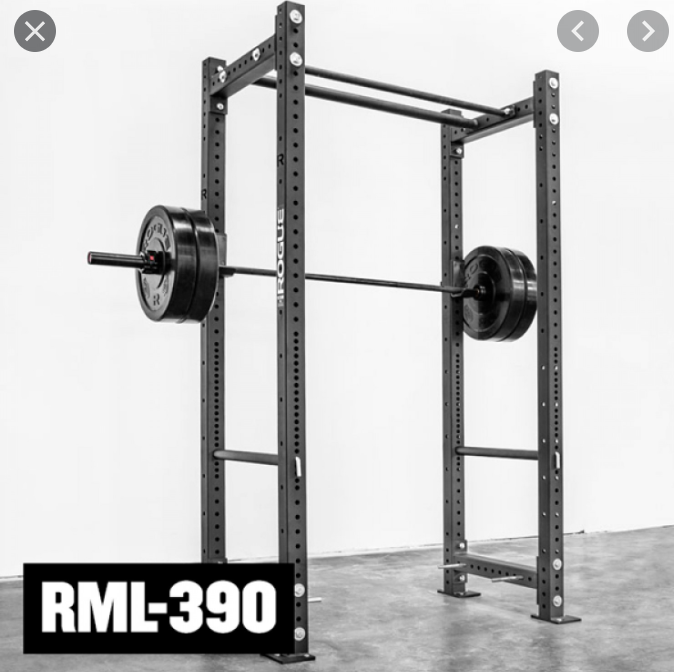Rogue RML-390 home gym power rack, a functional fitness equipment setup for home workouts during quarantine.