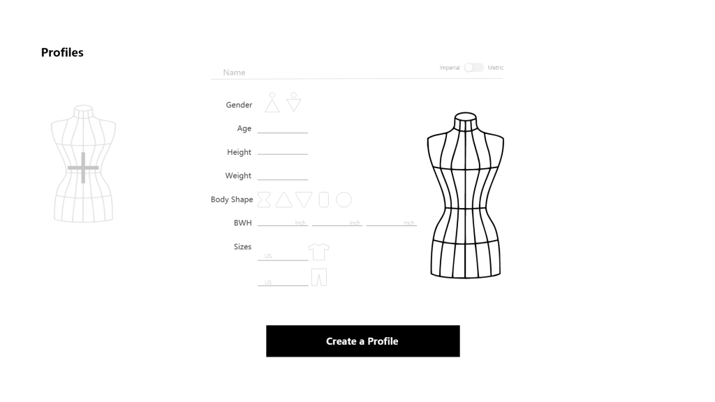 The user creates a profile including their own measurements. If they’re designing for another person, they can add a profile with their dimensions as well. s