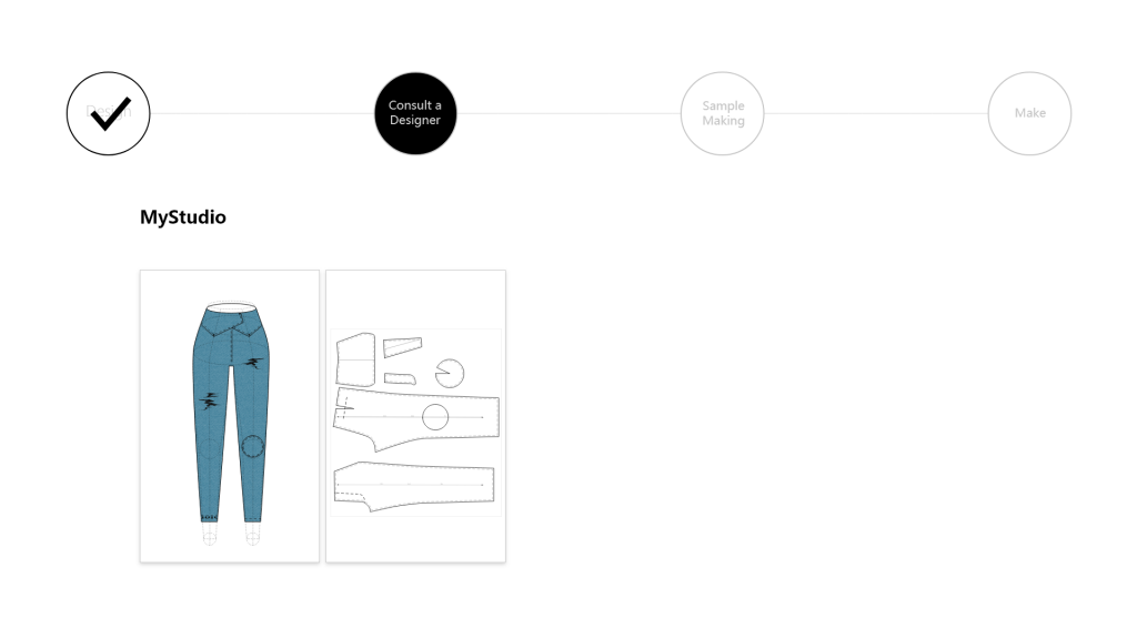 In the Collective Closet, the design forum, products with enough interest can move forward to real life production. The user can talk to suppliers about cost-reduction strategies like textile choice. If enough interest is present, suppliers and manufacturers will make the design and ship it to people’s doorsteps. A novice designer just created their own clothes!