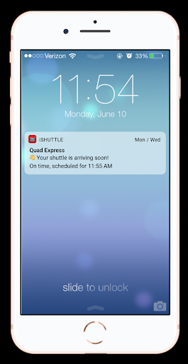 The shuttle tracker app also facilitates socio-pleasure in that it enables users to coordinate travel schedules. Once a user has found a route they would like to take, they are able to share that route with a fellow traveler. The second user, having received the route from the original user, then is able to start the same journey on their own device. This ensures that both users are receiving notifications about when the shuttle is approaching the origin stop, when there might be delays, and when their destination stop is upcoming. By coordinating schedules and alert systems, iShuttle relieves social stresses and facilitates a shared experience.