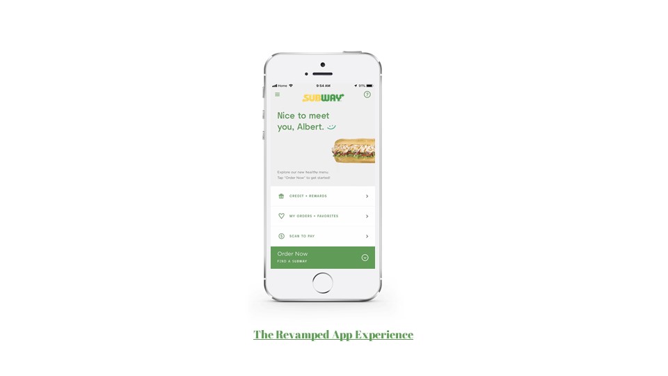 A revamped Subway mobile app designed to make ordering fast, healthy sandwiches more convenient and streamlined on the go.