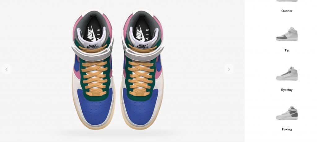 Nike-By-You customization platform allowing consumers to design personalized Nike sneakers in custom colors, materials, and styles.
