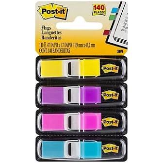Post-it Flags, small colorful transparent adhesive tabs used for annotating and organizing readings with a color-coding system.