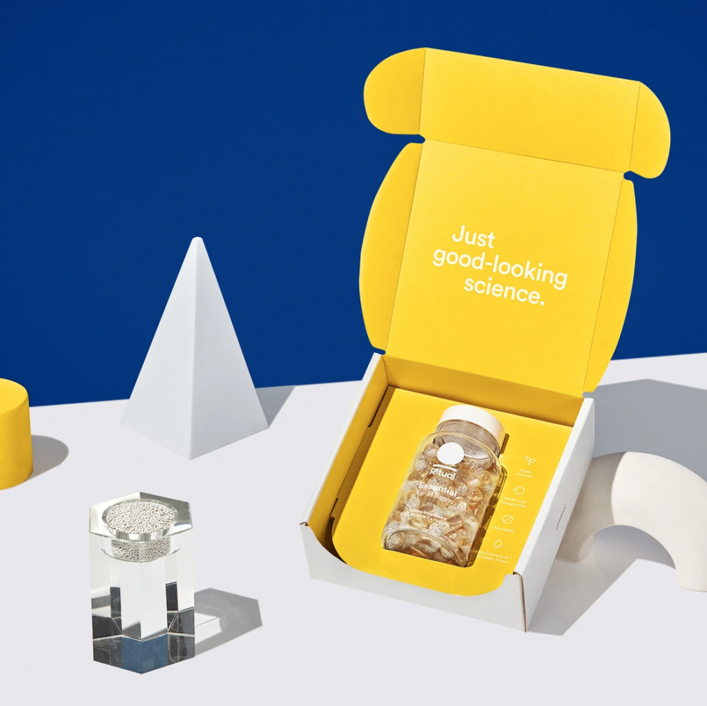 Ritual, a women's vitamin subscription service delivering customizable vegan and gluten-free supplements with modern branding.