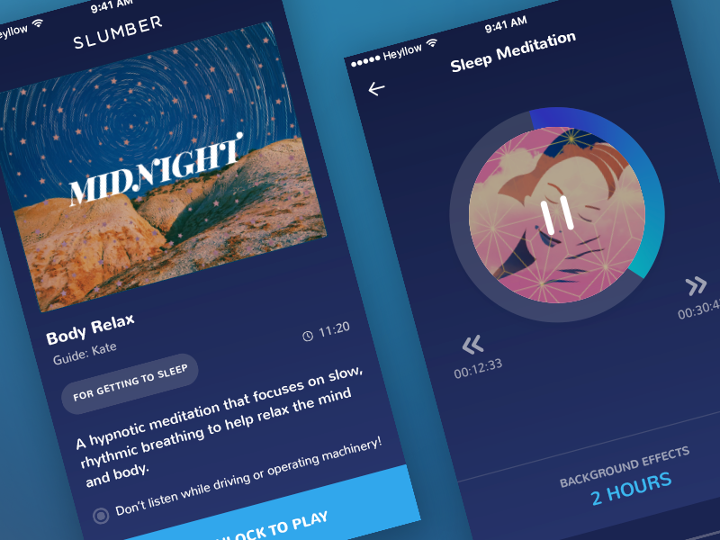 Slumber, a sleep aid app offering guided meditations, bedtime stories, and ambient background sounds to help users fall asleep.